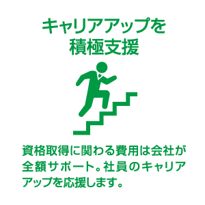 資格取得に関わるサポート体制が充実しています。受験や講習会への参加も含め、かかる費用を全面的にバックアップするほか、取得後には資格手当を支給しています。